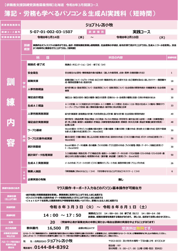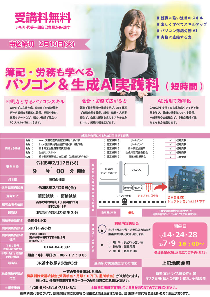簿記も学べる初心者のためのパソコン基礎科(短時間)