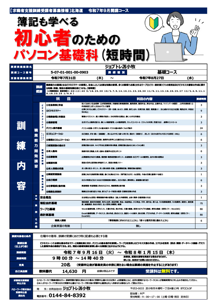 簿記も学べる初心者のためのパソコン基礎科 募集開始